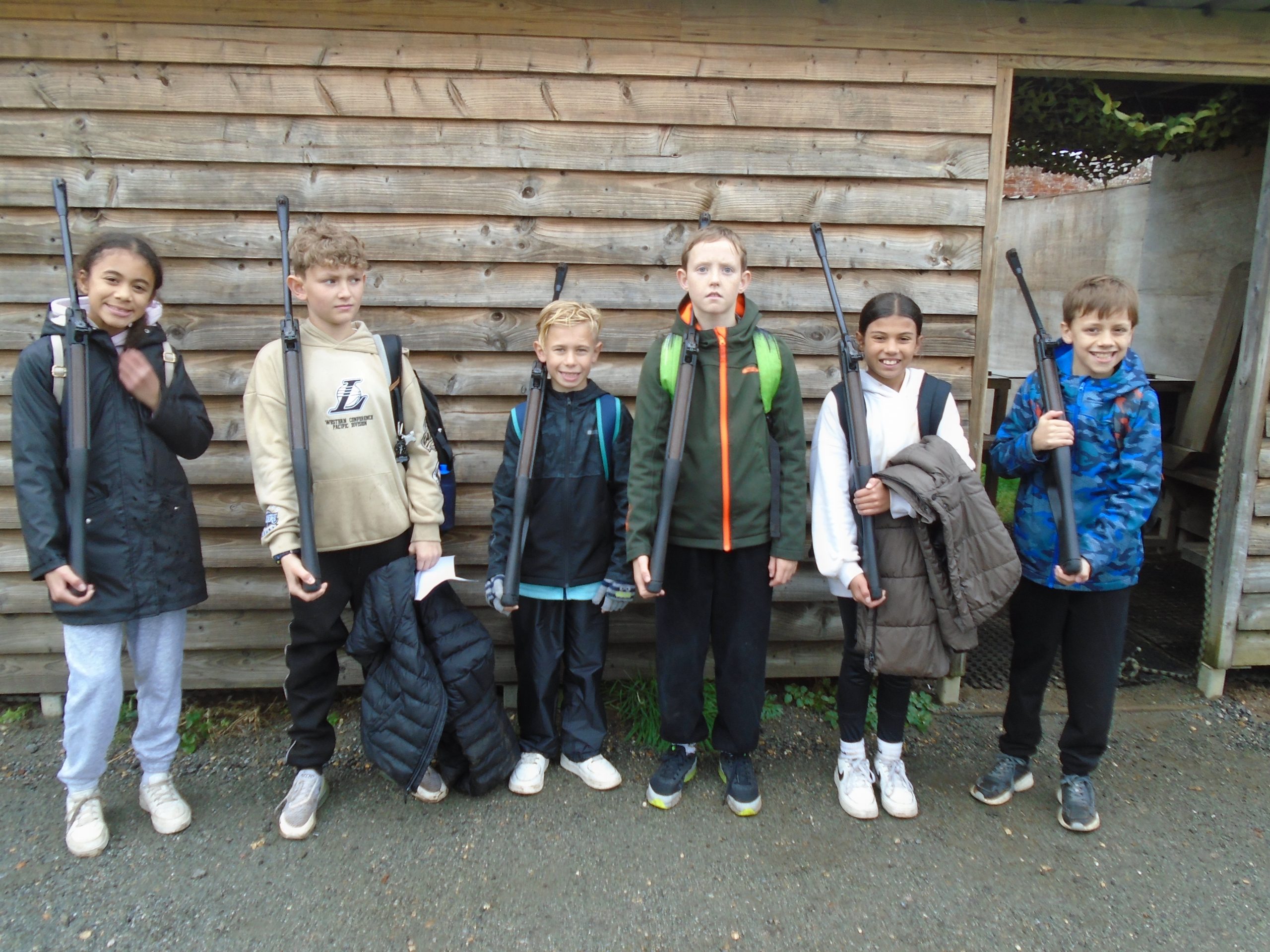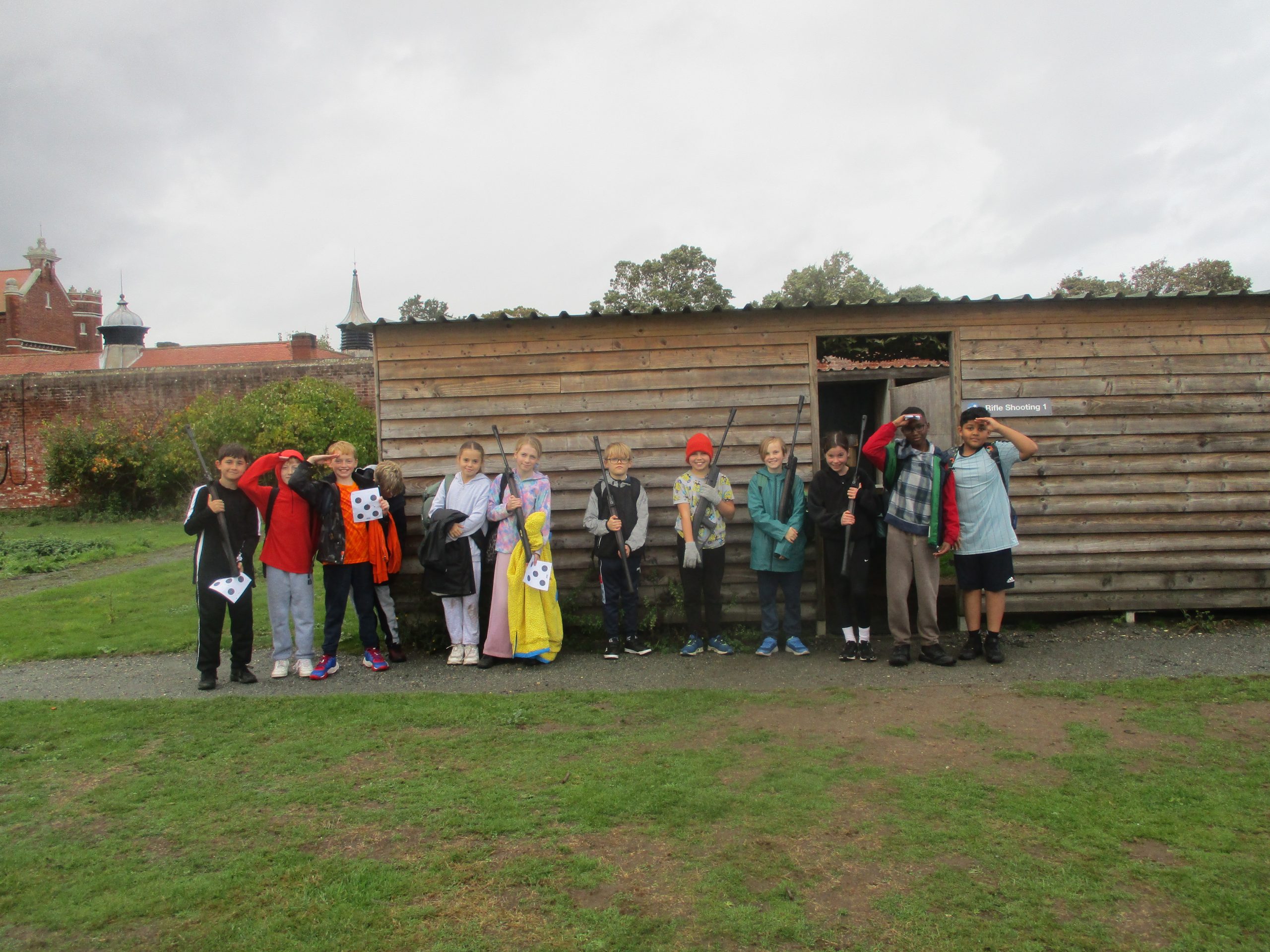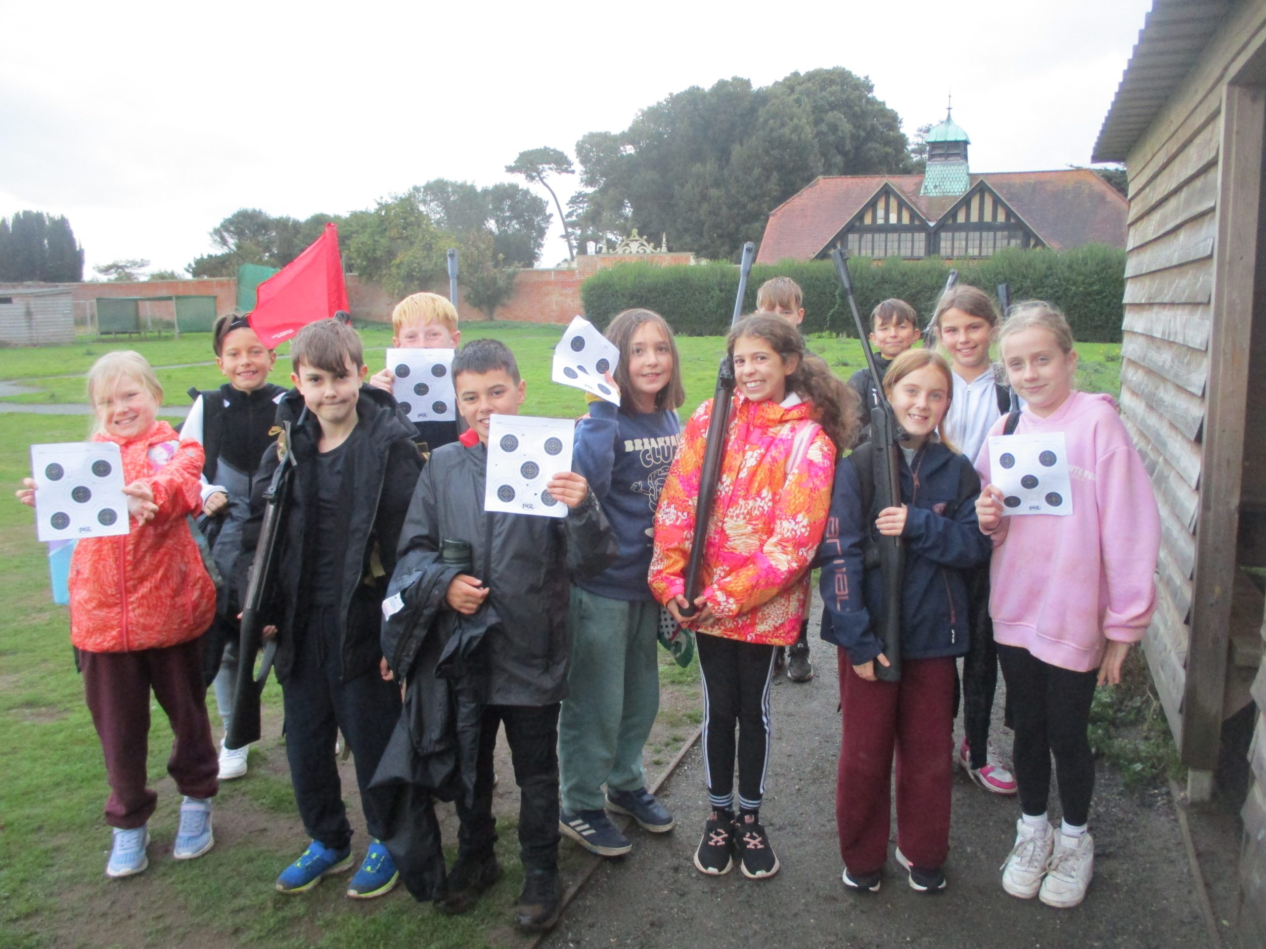 The children have arrived safely at Bawdsey Manor and are settling in well! They have put up their room name signs, which they decorated this morning, and have all chosen their bunks! We got stuck straight into activities this afternoon! Groups 1,2,3 and 4 have all tried their hand at climbing and rifle shooting. Group 5 have zip wired and done some orienteering! We have been really impressed with the children’s positive attitudes and how they are giving things a go even when they seem scary at first! We will soon be going for dinner and then have an evening activity. Whilst it has been wet, the children have remained in great spirits!